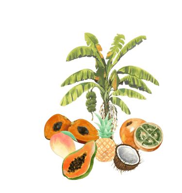 Una selección de frutas exóticas como el chontaduro, guanábana y lulo.